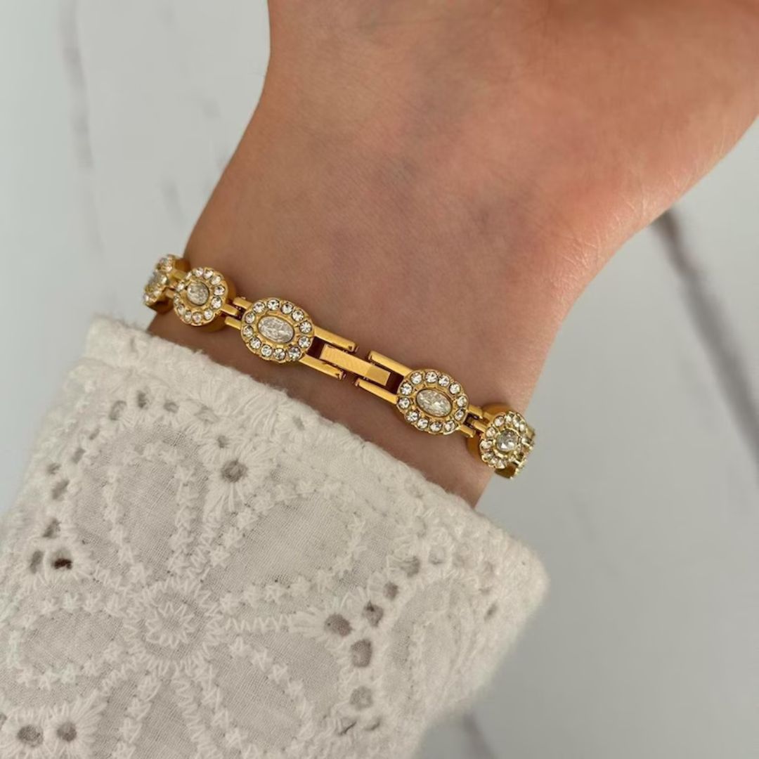 Nuestras joyas están hechas a mano y recubiertas con un baño de oro de alta calidad. Utilizamos acero inoxidable como base, lo que garantiza piezas duraderas que no se oxidan y mantienen su brillo incluso con el uso diario.